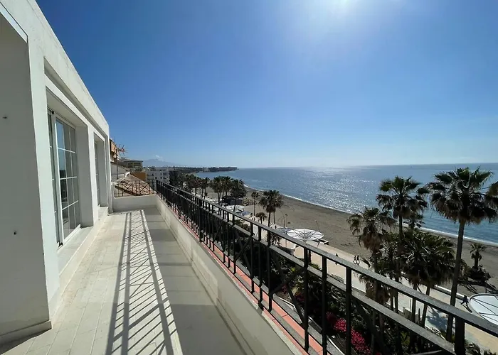 Con una ubicación frente a la playa, el Beachline Penthouse - Sealine Apartments Estepona ofrece vistas al mar, a una distancia de 900 metros de il Parque de la Constitución. Los huéspedes pueden relajarse en la terraza de este apartamento de 70 m², que se encuentra bastante cerca del Centro Comercial Laguna Village.